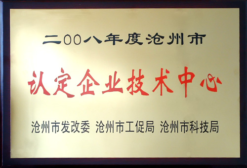 我公司被滄州市發(fā)改委、滄州市工促局、滄州市科技局聯合認定為2008年度企業(yè)技術中心。近日,獎牌下發(fā)到公司。這是繼我公司被評為“河北省高新技術企業(yè)”、“滄州市高新技術先導企業(yè)”之后,政府部門再次對我公司多年來一直致力于新技術研發(fā)和投入的肯定。這一稱號的取得,也會為企業(yè)帶來一定的政策支持。