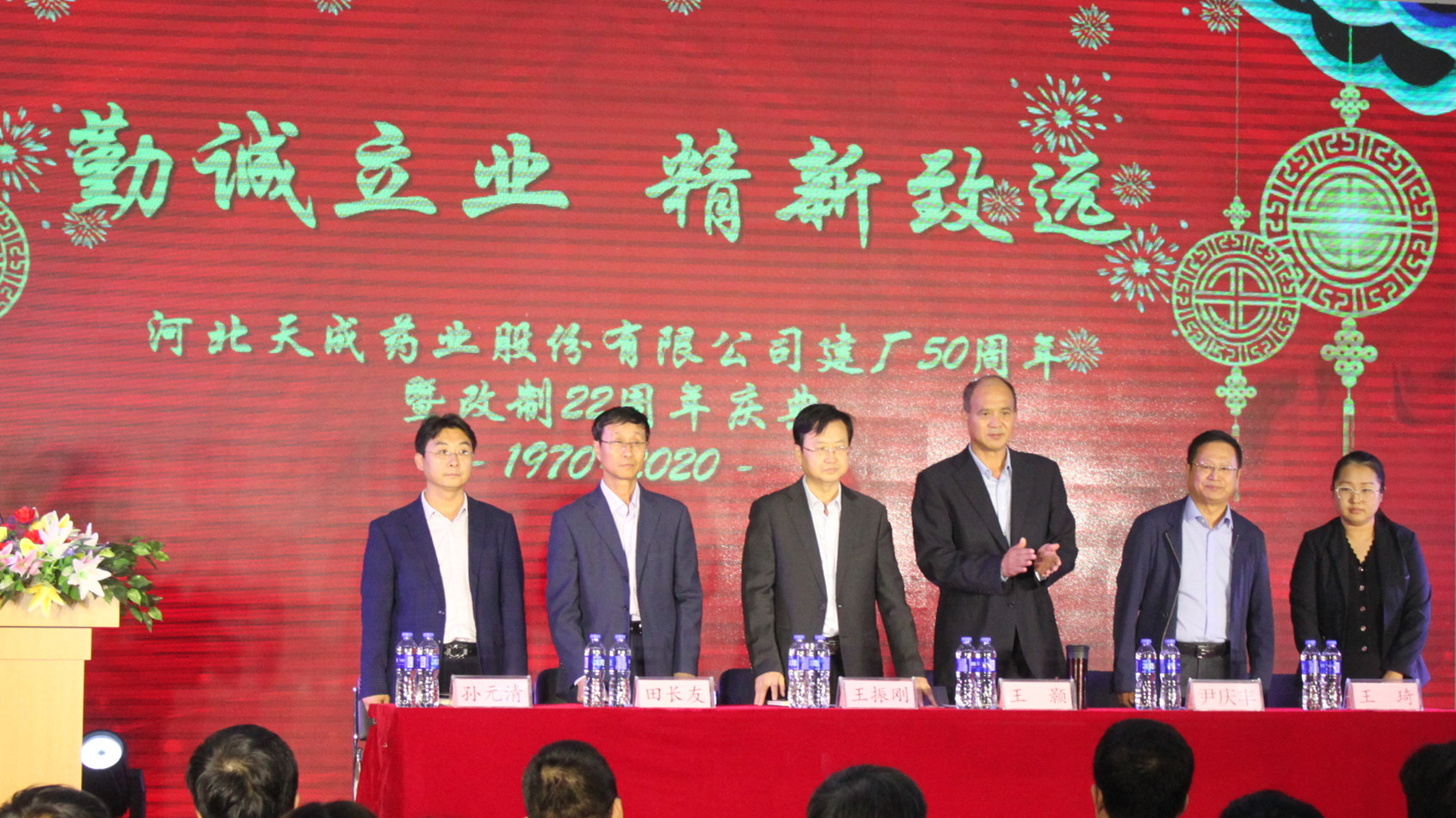 金秋十月,碩果盈枝,承載豐收的喜悅,不僅迎來了祖國71周年華誕和中秋佳節(jié),也迎來了公司建廠50周年、改制22周年的紀(jì)念日。為更好地紀(jì)念歷史,歌頌新老天成人的先進(jìn)事跡,矢志不移地傳承“制好藥 為人民”的企業(yè)經(jīng)營宗旨,弘揚(yáng)“勤誠立業(yè) 精新致遠(yuǎn)”的企業(yè)核心文化,9月29日,公司在三分廠活動室舉辦公司建廠50周年暨改制22周年慶典大會。公司董事會成員、天成藥業(yè)、道恩藥業(yè)、渤海分公司、天津藥物研究院的干部員工以及部分退休老干部齊聚一堂,共同參加慶典。