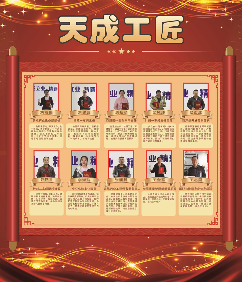 唐岳圣:口服固體制劑車間主任,她跟班生產(chǎn)、鉆研工藝、琢磨細(xì)節(jié)、通過(guò)與設(shè)備廠家溝通微調(diào)設(shè)備、改進(jìn)工藝參數(shù)、對(duì)廠房環(huán)境控制、制定詳細(xì)的操作流程,改進(jìn)了多項(xiàng)產(chǎn)品質(zhì)量問(wèn)題,使得產(chǎn)品質(zhì)量再創(chuàng)新高。